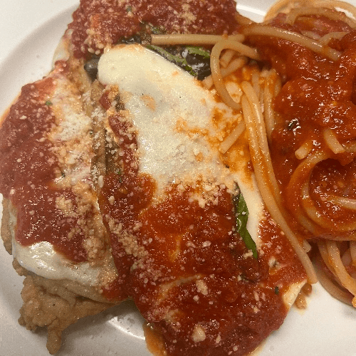 Entree. Breaded chicken topped with marinara sauce and mozzarella. Served only from 04:30 pm - 09:30 pm