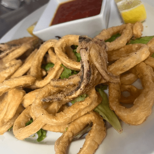 Flash fried squid, crunchy on the outside and simply perfect on the inside. Kick it up a notch with a squeeze of lemon