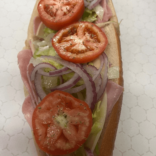 Topped with deli-sliced ham